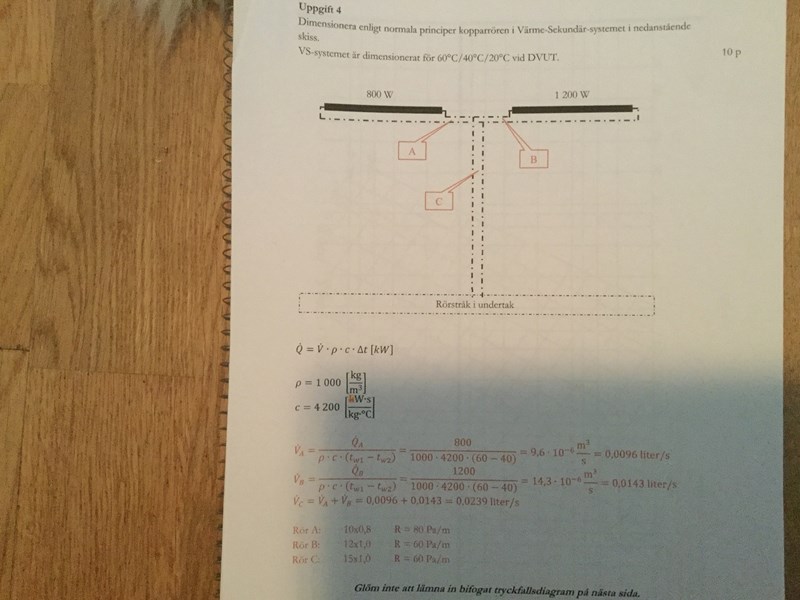 jag menar punkt B eller Rör B är 12 x 1;0. R = 60 pa/m