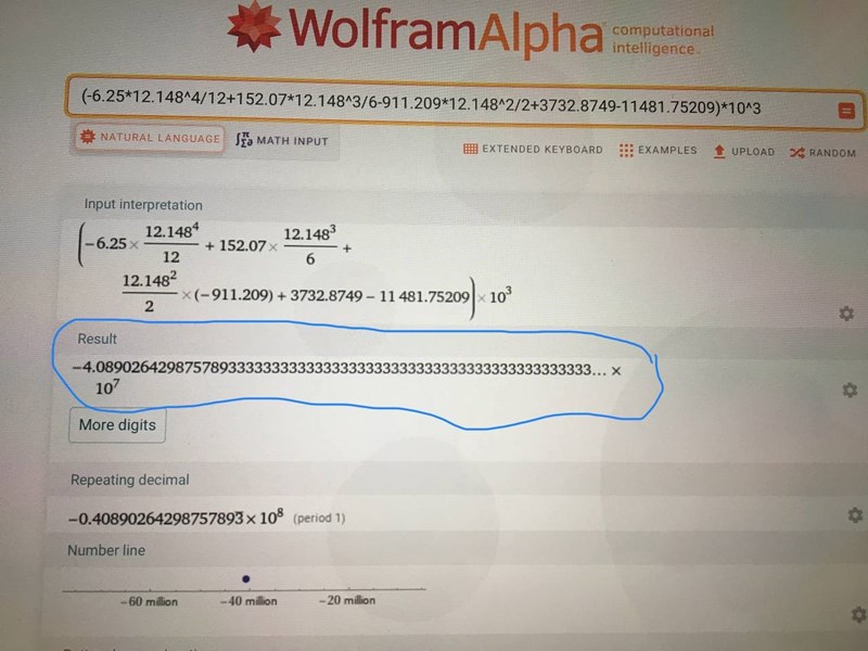 Jag glömde skriva att du måste använda decimalpunkt istället för decimalkomma när du skriver in det i WolframAlpha.