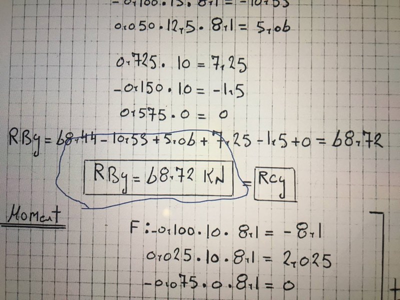 tex = 68,44 - 10,53 +5,06 +7,25- 1,5 +0= får ni svar 68,72 KN ?