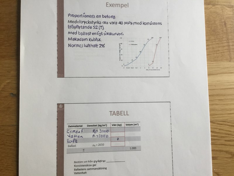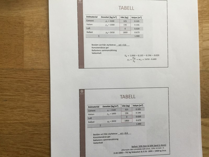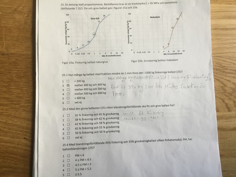svar: om man tar 100-39=61 Finkornig.         100-61=39 grov. Eller är svaret alternativt 4? För att på fråga 25.4 så står det på frågan att Med blandningsförhållande 45% finkornig och 55% grovkornigballast.Är det svaret på 25:3?