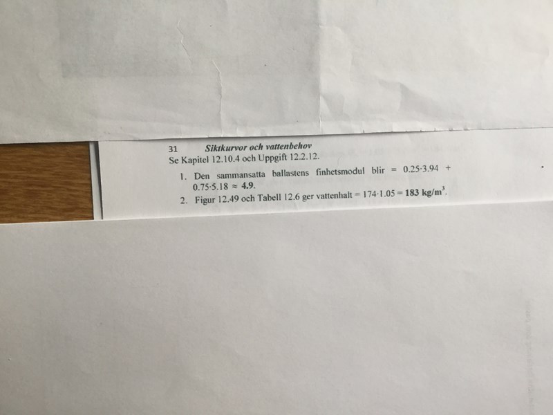 om du ser på fråga 8 den andra lappen det står Med blandningsförhållande 50% Grus 0/8 och 50% Makadam,vilken finhetsmodul,FM,har ballastblandningen(5)?