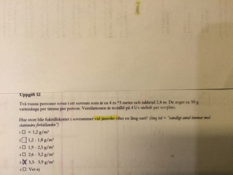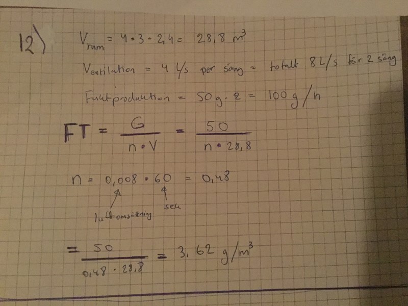 Fuktproduktion= 2*50 g / h = 100 g / h