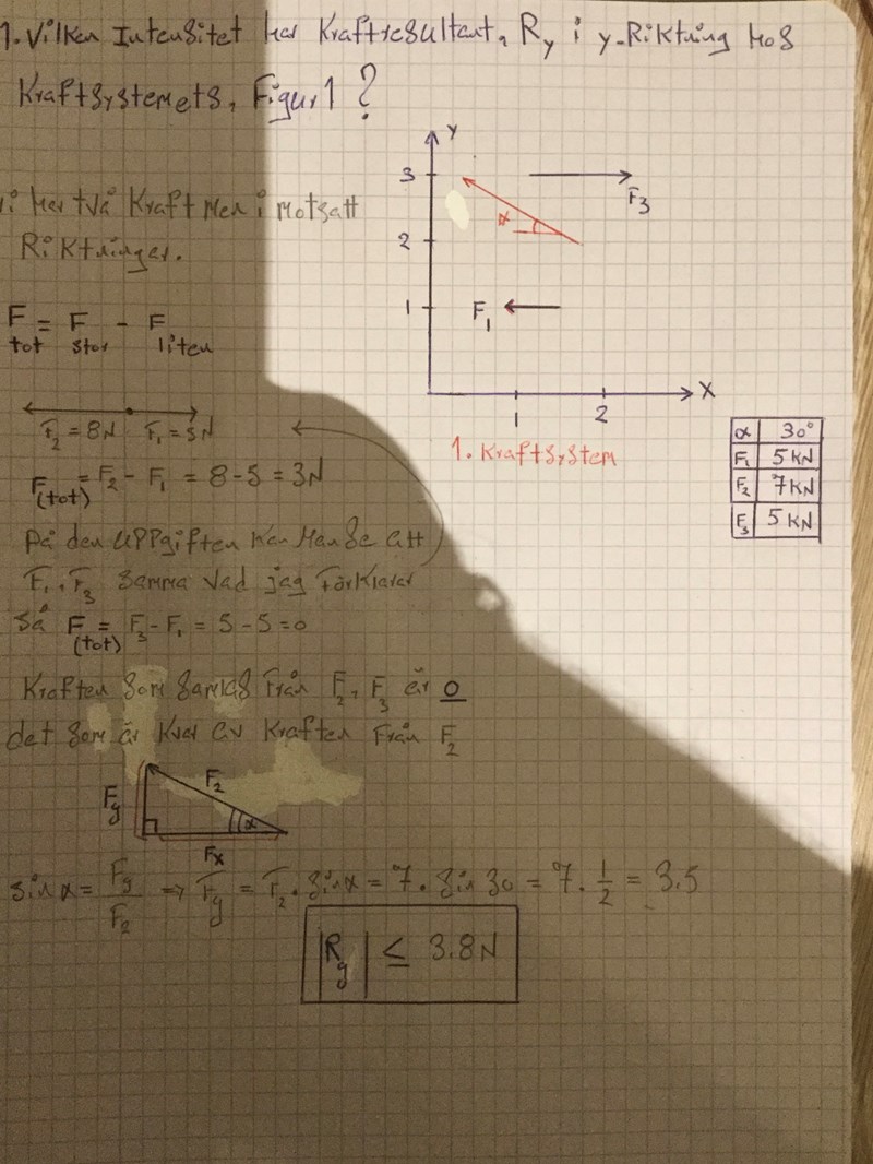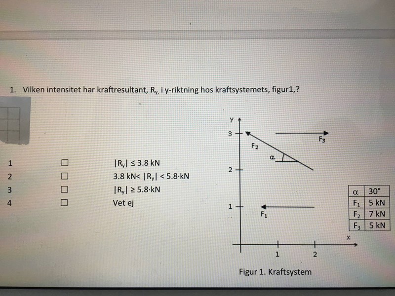 Hej snälla finns det nån som kan hjälpa mig 🙏🏽🙏🏽Vilken intensitet har kraftresultant Ry i y-Rikning hos kraftsystemets ?