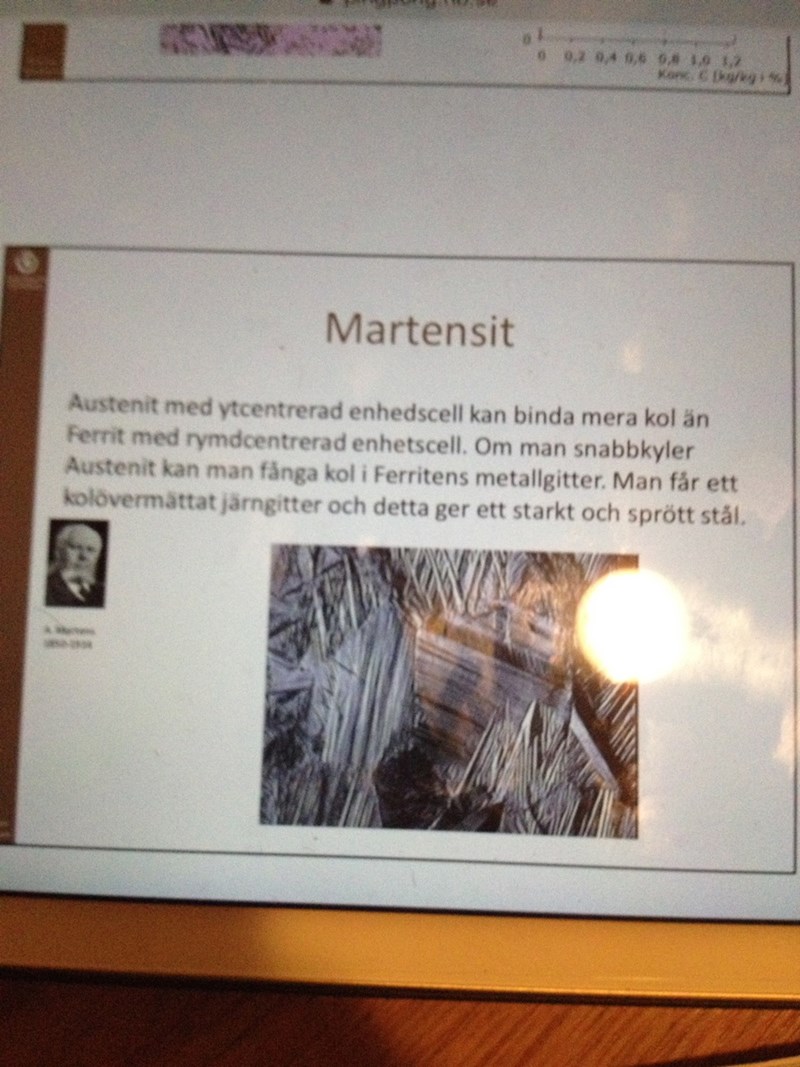 Ju mer jag tänker på det desto mer förundrad blir jag att jag skrev att det kan vara en smälta... Allt man kan använda austeniten till (t.ex. att härda till det mycket starka martensit stålet/anlöpning osv)