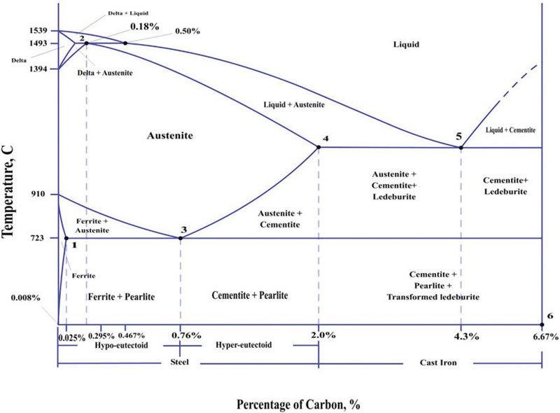4-Omslagstemperaturen för stål beskriver temperaturen när ferrit övergår till cementit.