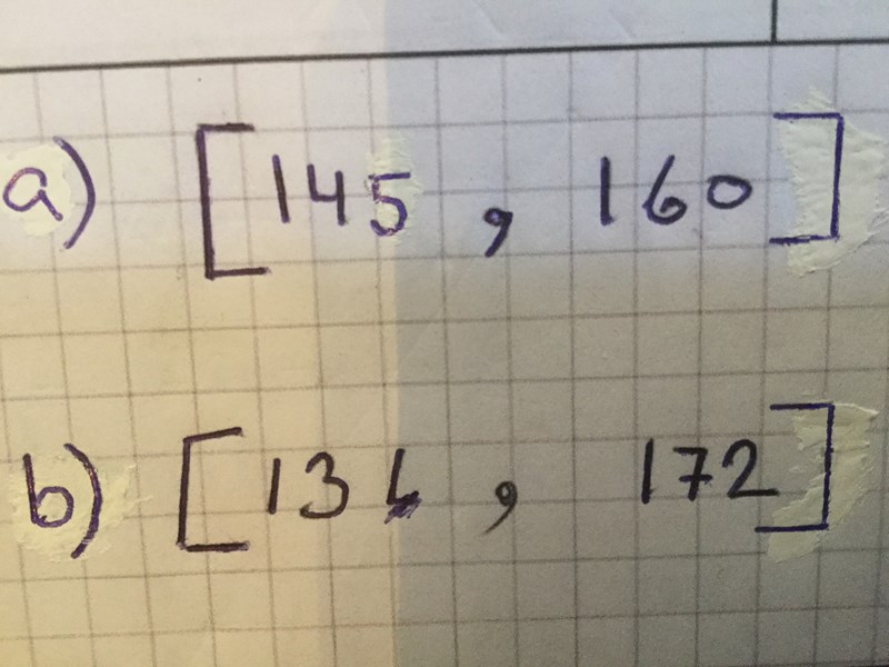 Snälla är det nån som kan förklara uppgifterna a) och b) och vad är sambandet mellan dessa värde a) [ 145,160]. b) [136,172]