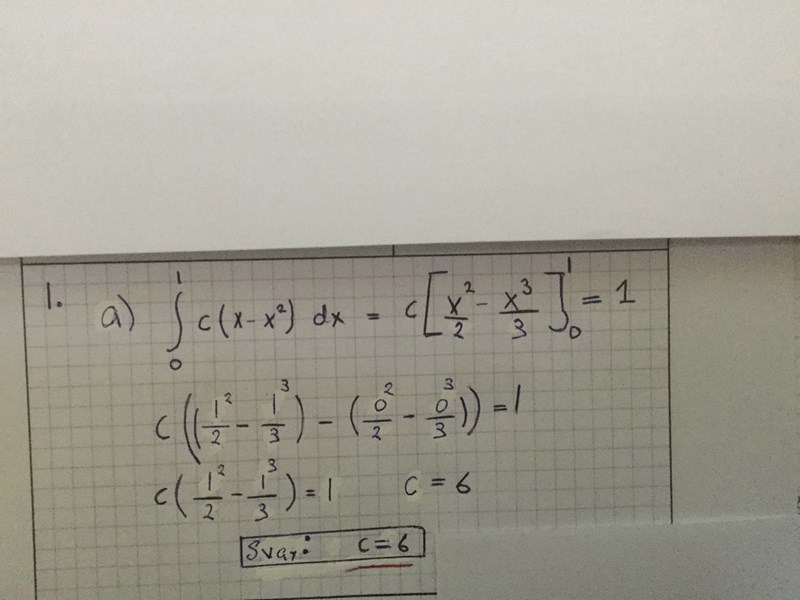 jag förstår att c( 1/2^2 - 1/3^3)=1 Men hur kan c=6 ? Var kommer 6 ifrån?