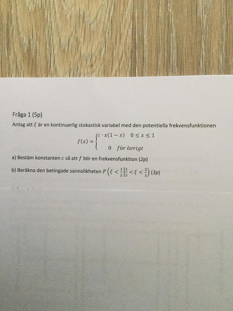a) Bestäm konstanten c så att f blir en frekvensfunktion?