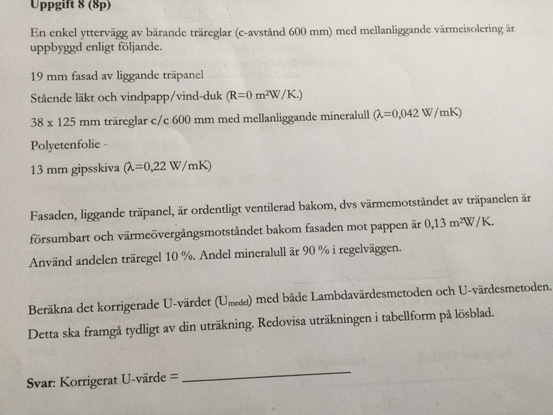 man skall beräkna det korrigerade U -värde (U-medel) med både Lambdavärdesmetoden och U-värdesmetoden.Detta skall framgå tydligt av min räkning.Redovisa uträkningen i tabellform.