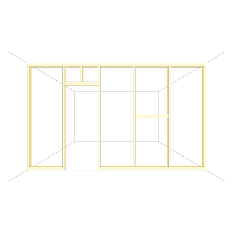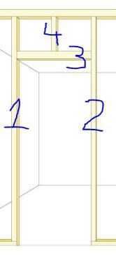 Rita hur två reglarna placeras i väggen och hur en dörrkarm monteras mellan reglarna.