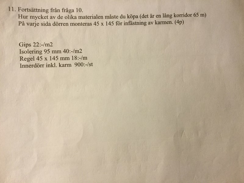 Hur mycket av de olika materialens måste du köpa ( det är en lång korridor 65m)