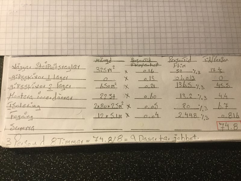 OK, för innerdörrarna, men du har inte tagit med kostnaderna för reglarna 45 x 145mm, som dörrkarmarna ska fästas i