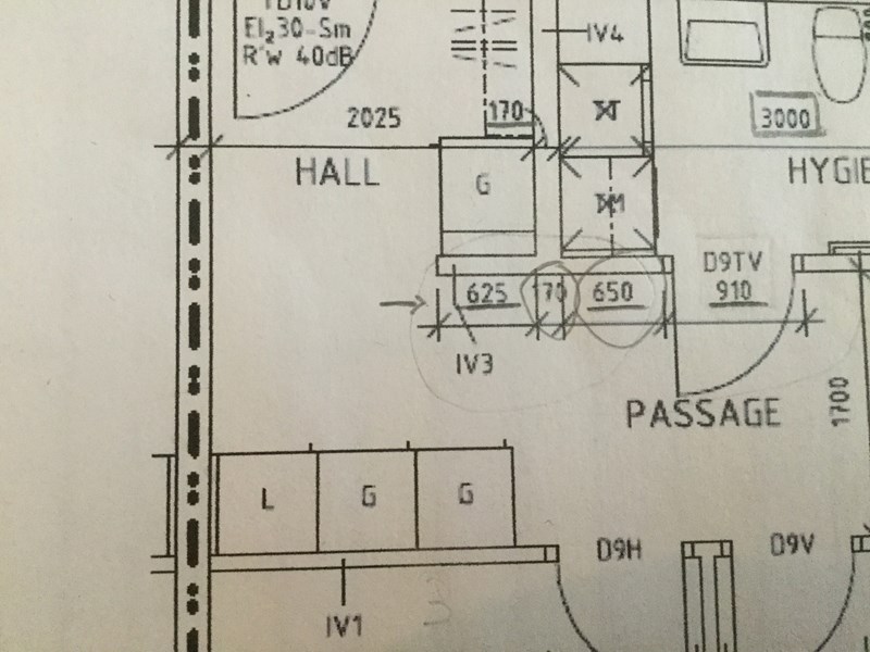 IV2 = 3,0 - 0,65 - 0,91 + 0,095 [m]….beroende på var vägg IV2 möter IV1
