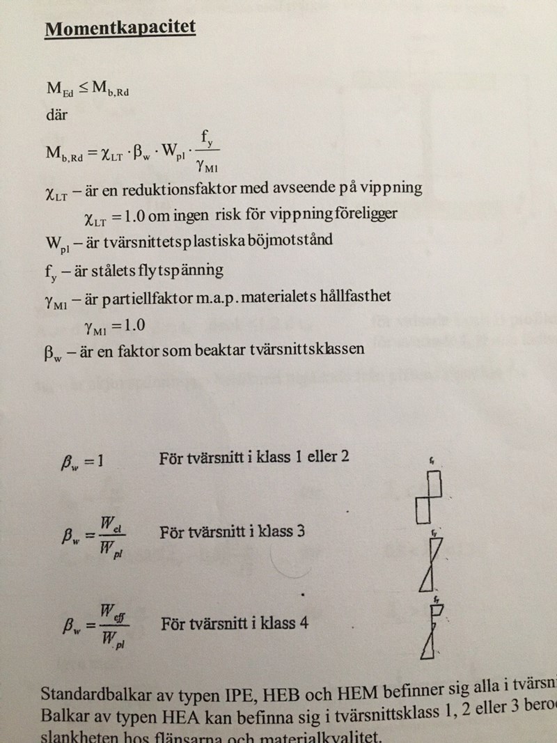 Hej .Det här uppgiften jag lägger ut är Fortsättning på Lasträkning av taket stålbalkarna.Jag har räknat ut Momentkapacitet på denna uppgift och jag har inga problem och förstå detta.Det jag behöver hjälp är två st värde som jag behöver hjälp med och förstå..hoppas ni kan hjälpa mig🙏🏻🙏🏻