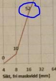 som vi ser på figuren 5b är den röda linjen till höger.16 är mellan 8 och 32.Är det så att det blir 52 man läser av den?