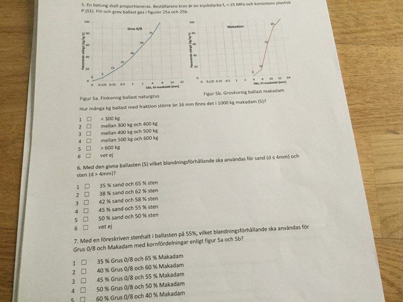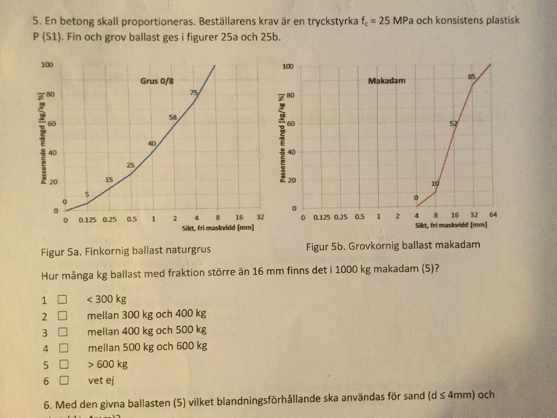 Uppgiften fortsätter och det står den givna ballasten (5) vilket blandningsförhållande skall användas för sand (d< 4mm) och sten ( d > 4mm)?