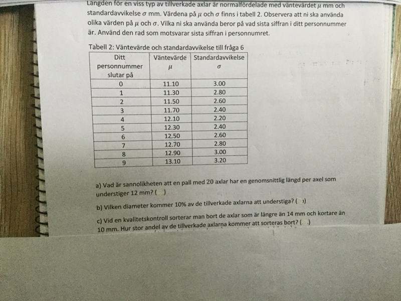 Tack för ditt svar 🙏🏽🙏🏽Ja om man tittar på mitt personnummer som avslutar på 4 så tar man väntevärde minus standardavvikelse delat på understiger 12 mm..Är det rätt det jag har gjort