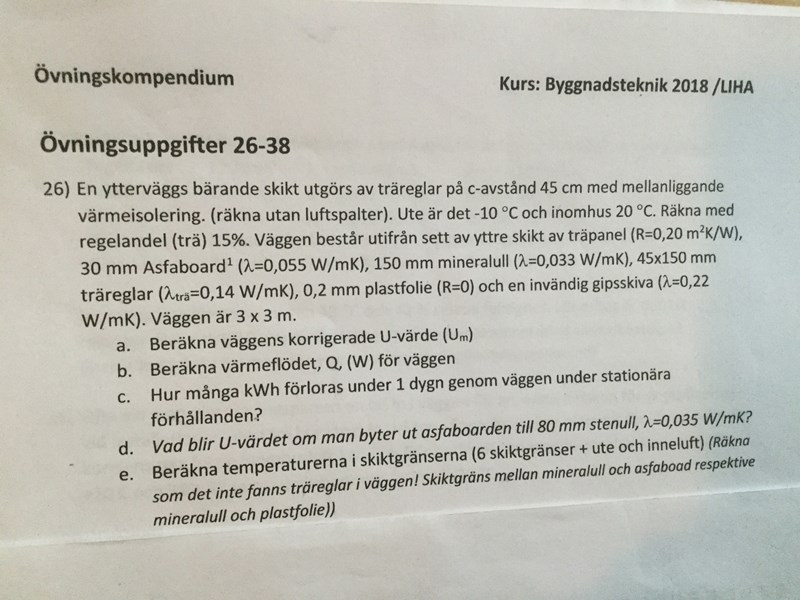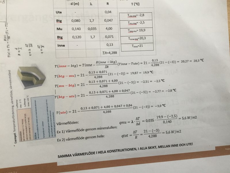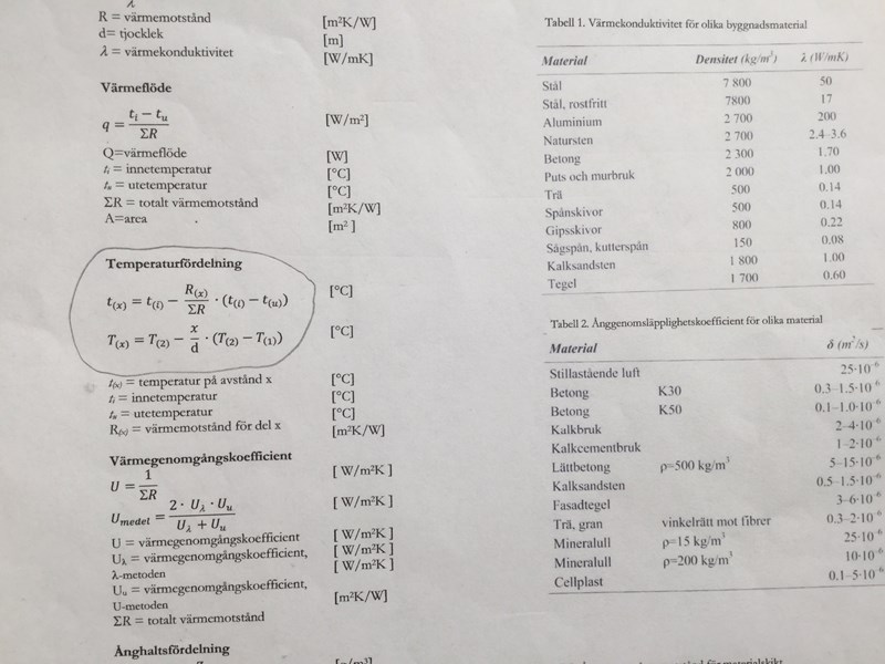 Hej som du ser i uträkning 26 så skall vi gå genom temperatur fördelning genom olika byggnadsmaterial och vi använder av oss av ett formel som jag bifogar här .