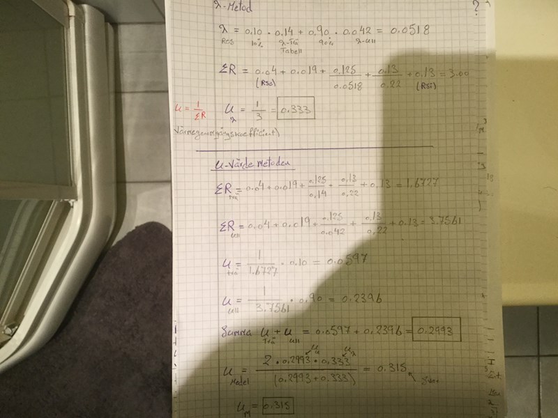 Hej,som ni ser i exempel uppgiften 6) vi har räknat Värde metoden för Värmekonduktivitet och U-värde metoden,och jag förstår mig på detta.