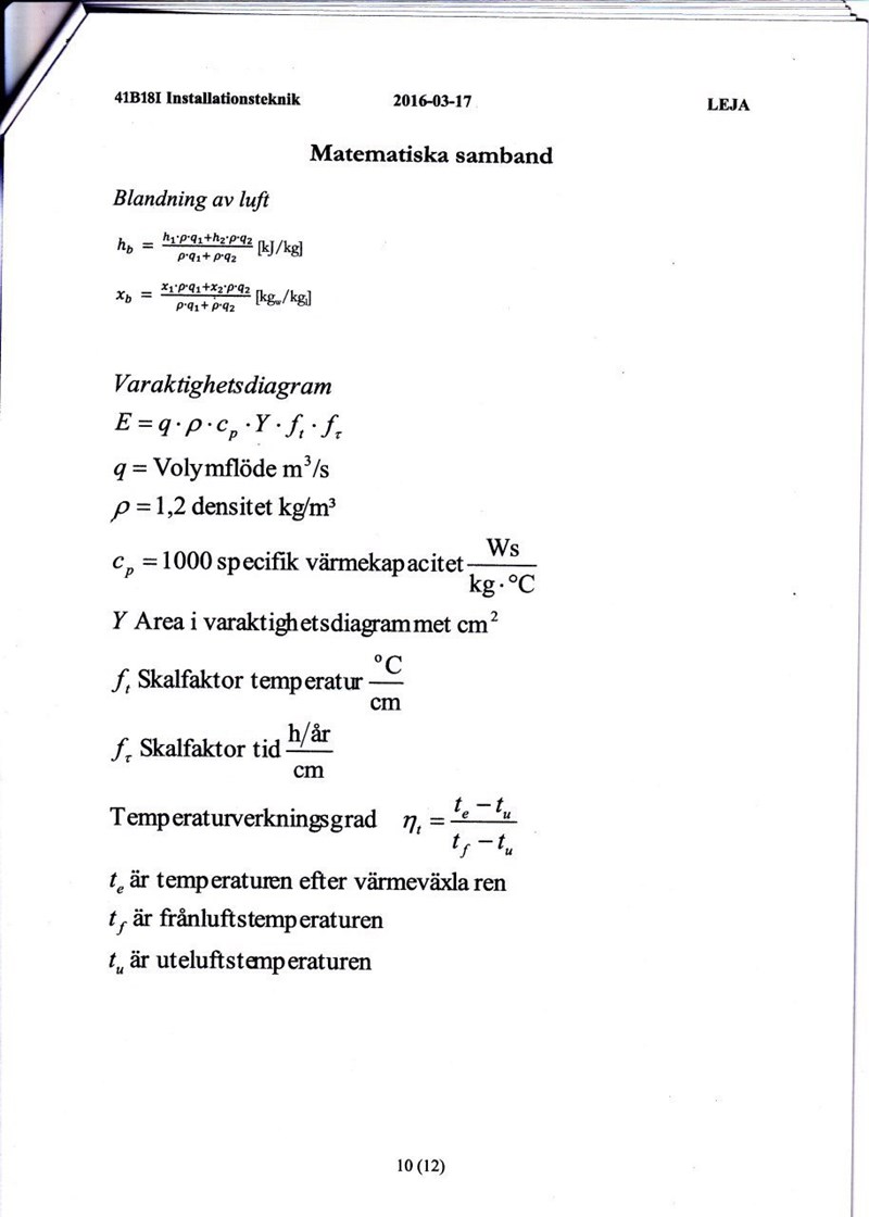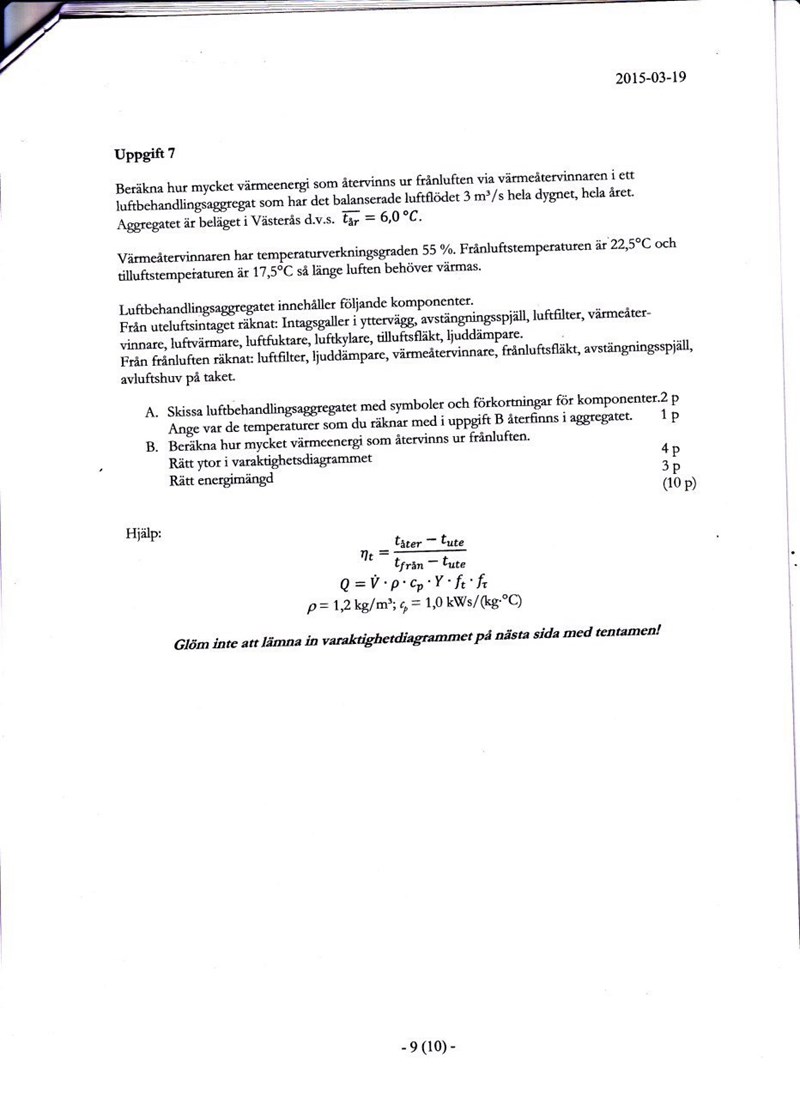är inte V=5,5 m^3/s (luftflödet). Och P= 1,2 kg/m^3. Cp är 1,0. De två sista vet jag inte?eller jag vet att det är skalfaktor temperatur C%cm.och den andra är skalfaktor tid h%år%cm.