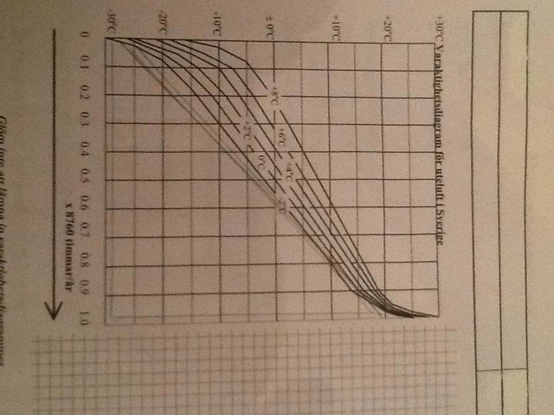 Du sa att man skall räkna rutor under sexgraders-kurvan av T (år)= 6 c? Är det där i diagrammet dom står +6C? Skall man räkna rutor från + - 0C till -30C där nere? Eller från +-0C till +-30 där uppe?