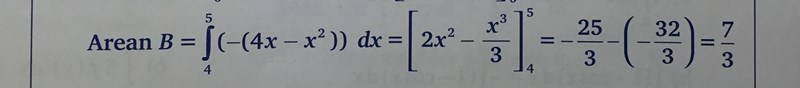 Hej, på följande bild undrar jag var det inte blir [-2x^2+x^3/3] inuti hakparentesen. Funktionen 4x-x^2 är negativ i spannet 4<x<5.