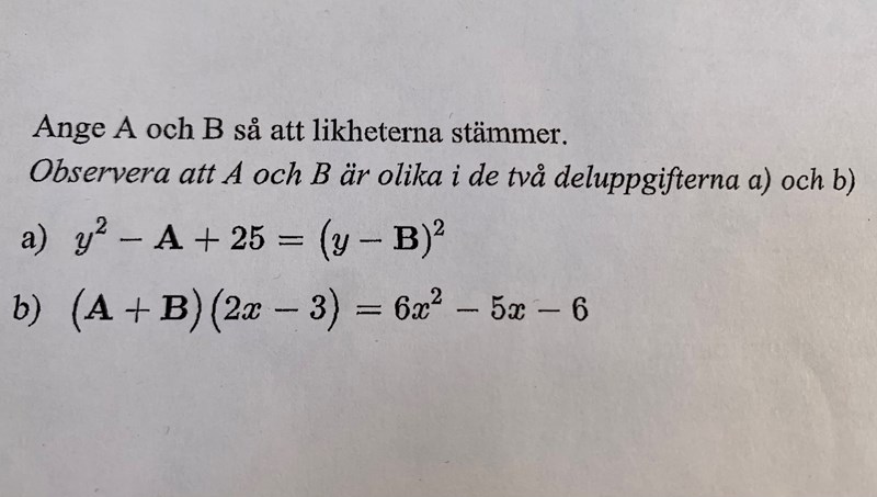 På b-uppgiften kan du multiplicera ihop parenteserna i vänsterledet och sedan jämföra vänster- och hlgerled med varandra.