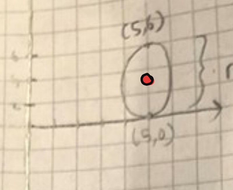 Eftersom både (5,0) och (5,6) ligger på cirkeln så är dessa diameterns ändpunkter.