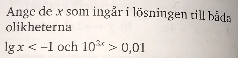 Om 0 < x < 0,1 är lösningen till den vänstra olikheten och x > -1 är lösningen till den högra olikheten,