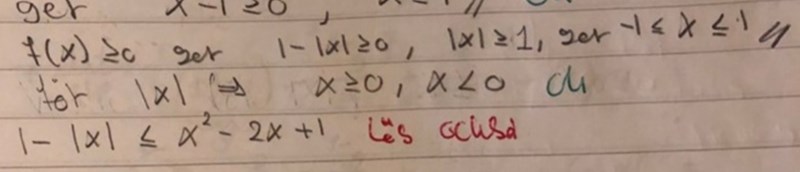 Får 1 - abs(x) <= x^2 - 2x + 1,