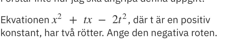 Ja, är den negativa roten eftersom det står i uppgiften att t är en positiv konstant