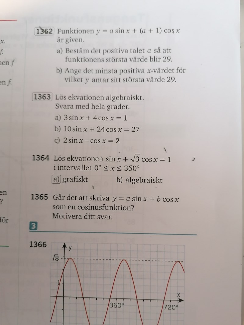 Hej. Jag förstår inte riktigt uppgiften 1162b). Jag sammanfattar som att "vad är det x i början av jämviktsläget då amplituden är 29?". Jag förstår inte riktigt vad "Vilket y antar sitt största värde 29" betyder...