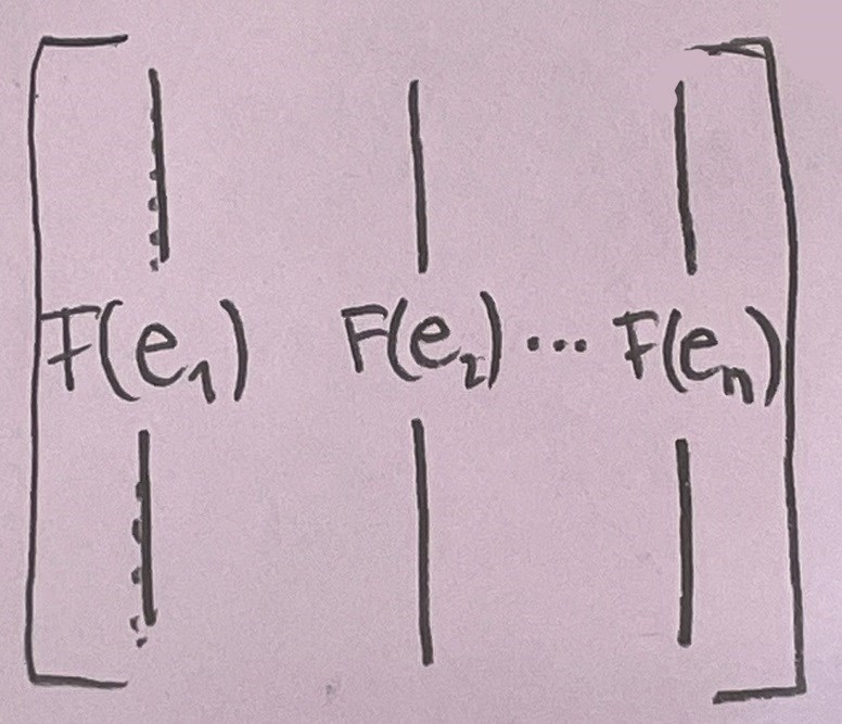 Nu är min linjära algebra inte vad den brukade vara, men jag skulle nog börja med att definiera en matris A som motsvarar avbildningen F. Därefter skulle jag fundera på vad blir. :)
