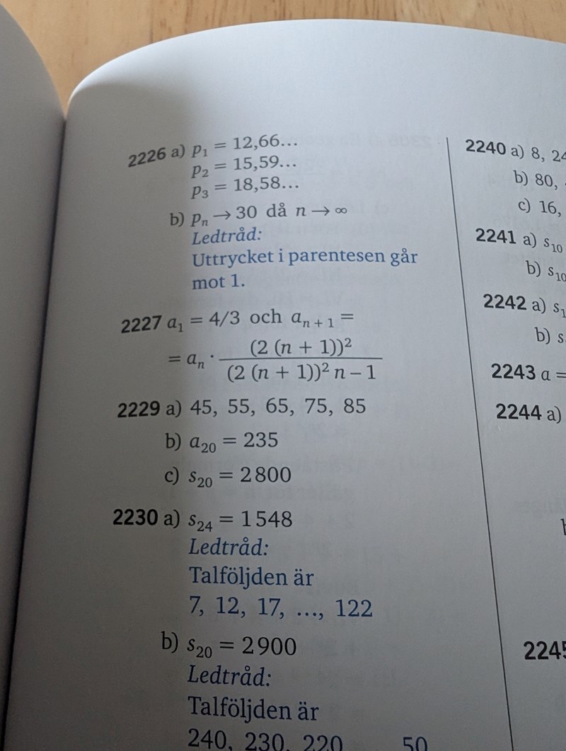 Kollade Facit och förstår inte nämnaren där det står n-1 på slutet? Isf för att beräkna a2 så blir det ju då 1-1 där, vilket blir 0, som inte blir så bra vad jag förstår?