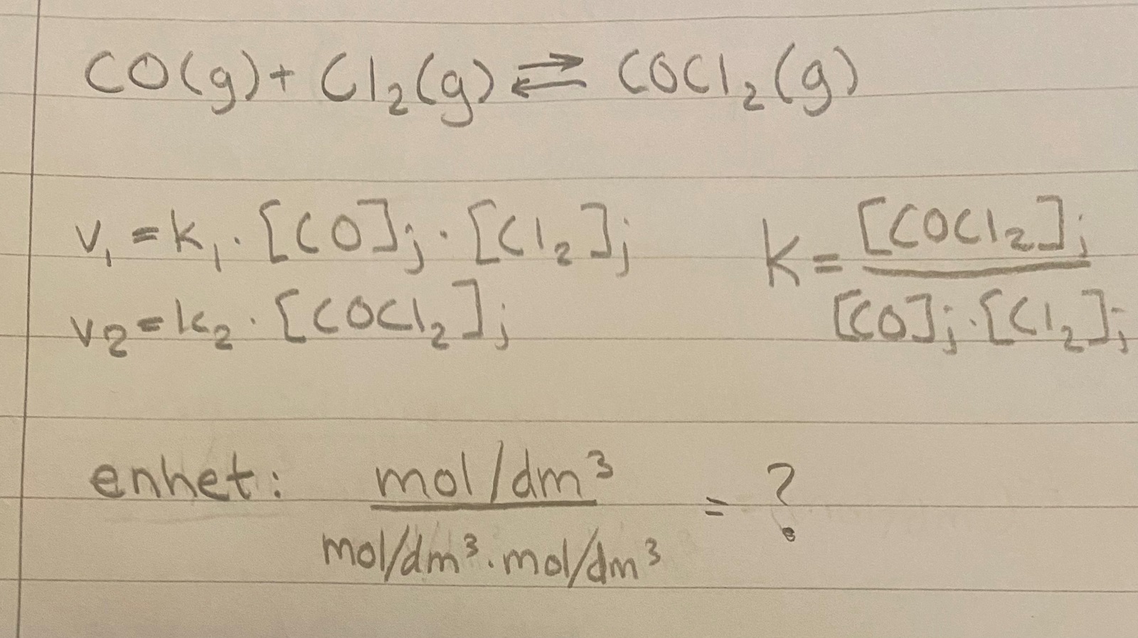För följande jämviktsreaktion, ange enheten på jämviktskonstanten K: