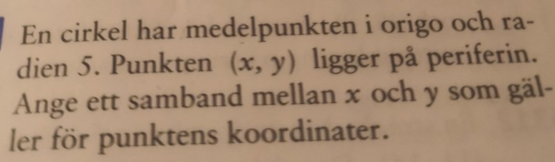 Ok. Sambandet mellan x och y, är då avståndsformeln mellan två punkter, dvs (0,0) och (x, y)