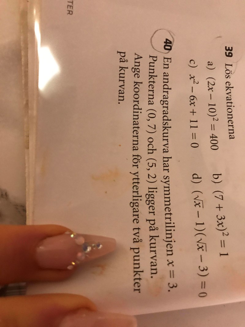 Vet inte riktigt hur jag ska göra. Symmetrilinjen är 3 dvs p kommer vara -6 punkten 0,7 är y axel 7 när x är noll. Blir ekvationen X^2-6x+ 7? Isånafall hur bestämmer jag fler punkter?