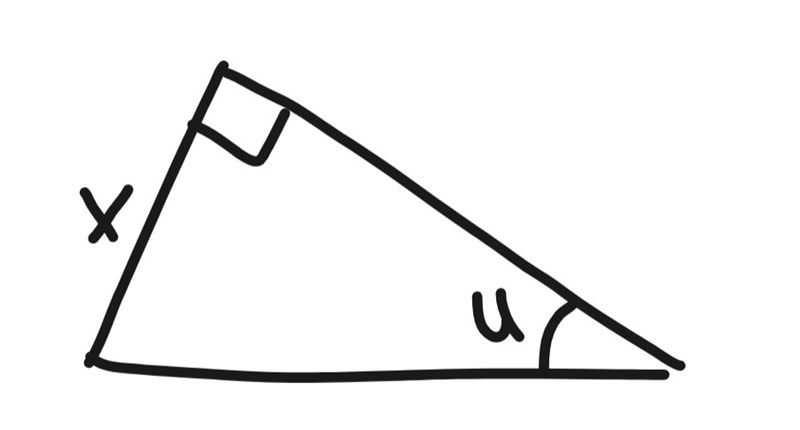 (det är en bild på en rätvinklig triangel där motsatt katet till tan u är markerad som x.)