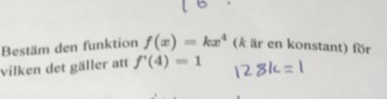 Testa stoppa in värdet i ursprungliga funktion och sen derivera och se om derivatans värde är 1 i punkten 4. Om ja, då har du gjort rätt.