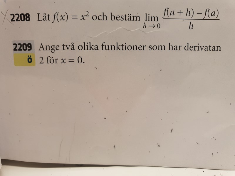 Smaragdalena skrev:Då kollar vi ditt svar: Har den här funktionens derivata värdet 2 när x = 0?