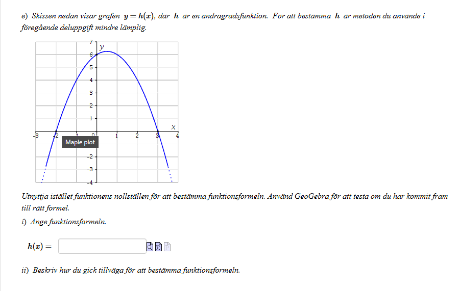 micke2z skrev:rapidos skrev:h(x)=k(x+2)(x-3). k beräknas genom att använda lämpligt x,y-värde från grafen.