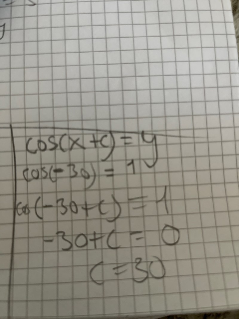 Du bör skriva y(30°) = 1, dvs cos(30°+C) = 1