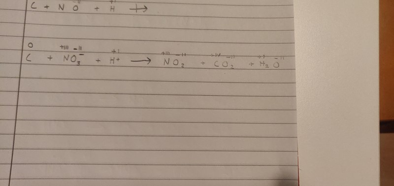 C + NO3- + H+ =NO2 + CO2 + H2O