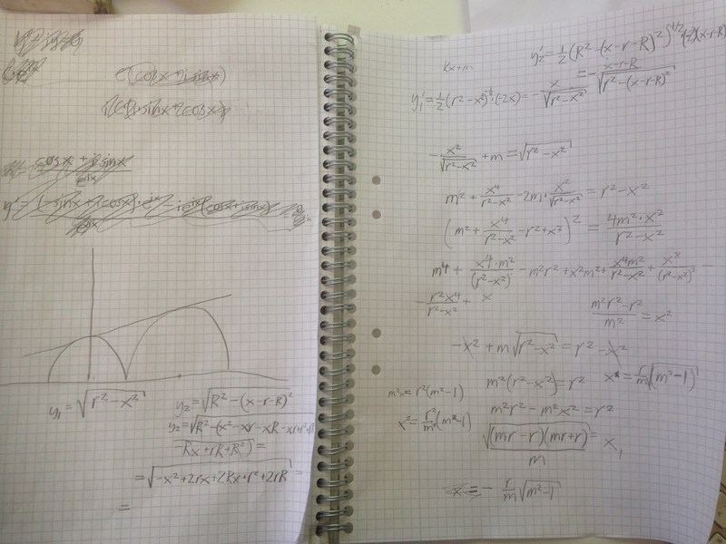 Men tangeringspunkterna blir inte (0,r) och (r+R, R) de kommer att vara strax till vänster och nedanför dessa punkter. Där stämmer inte riktigt den bild Eric ritat.