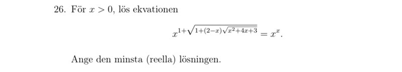 Återstår den 'triviala' lösningen x=1, vilket är den minsta reella lösningen