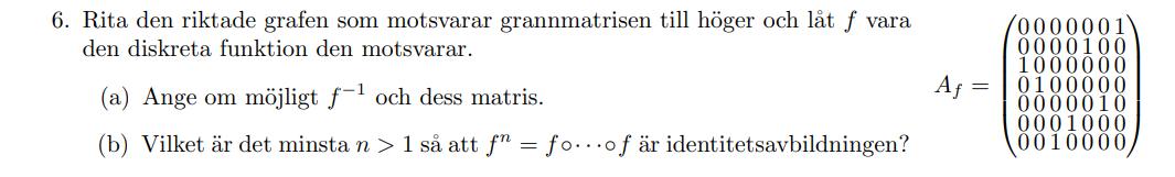 men funktionerna till matrisen är den f(1)=3, f(3)=7 och f(7)=1