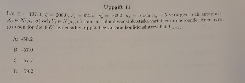 Ange övre gränsen för 95% ensidigt konfidenseintervall