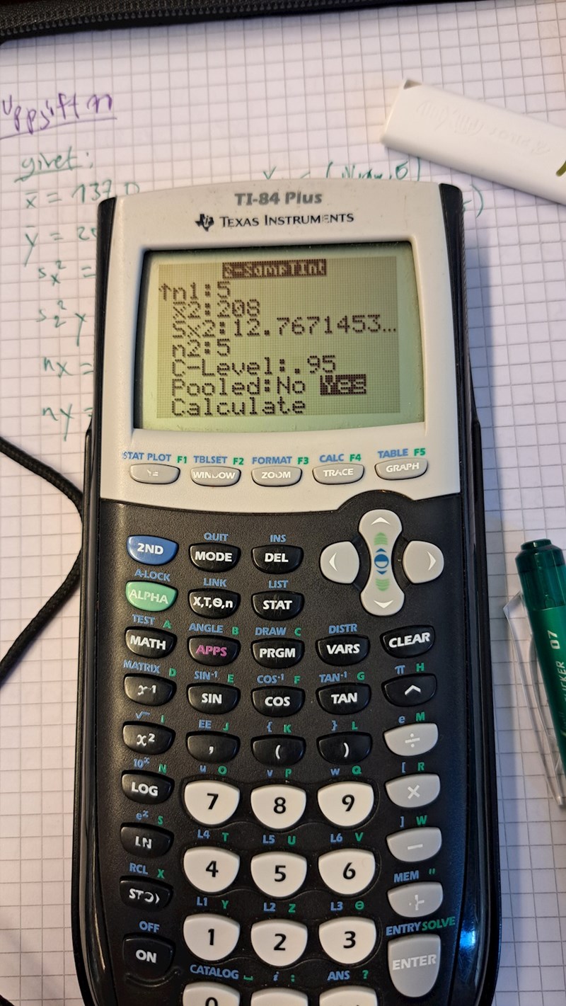 Jag försöker använda mig av grafräknare för att svara på denna fråga , men av någon konstig anledning får jag inte rätt svar när jag valde yes och det går inte att fästa "no" så att pooled inte är bara inställd på yes hela tiden. Borde jag välja en annan test ?