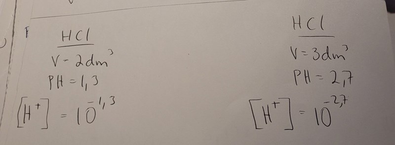 - Räkna ut substansmängden av oxoniumjoner i blandnigen