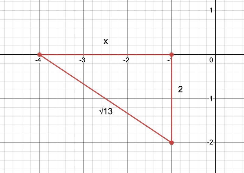 Du vet längden på hypotenusan och kan enkelt få fram längden på den vertikala sidan (den mellan punkten (-1,-2) och punkten (-1,0)). Kan du räkna ut längden på den horisontella sidan av triangeln?